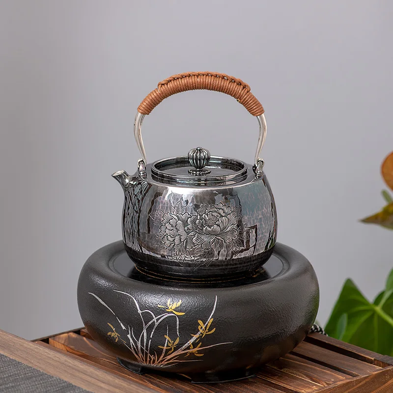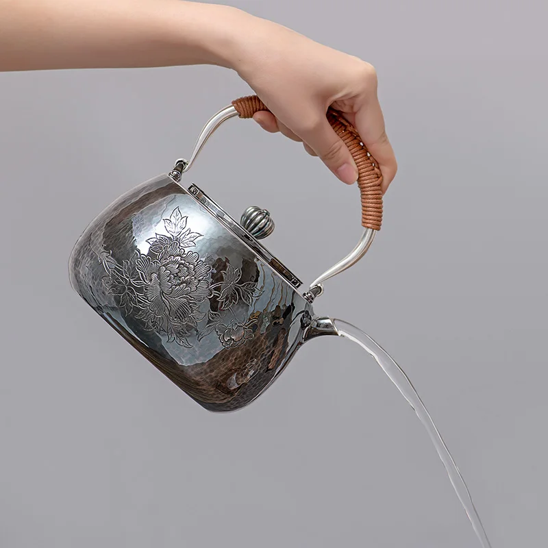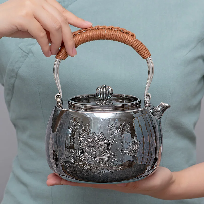 Sterling silver pot sterling silver handmade peony kung fu tea set kung fu tea kettle health sterli
